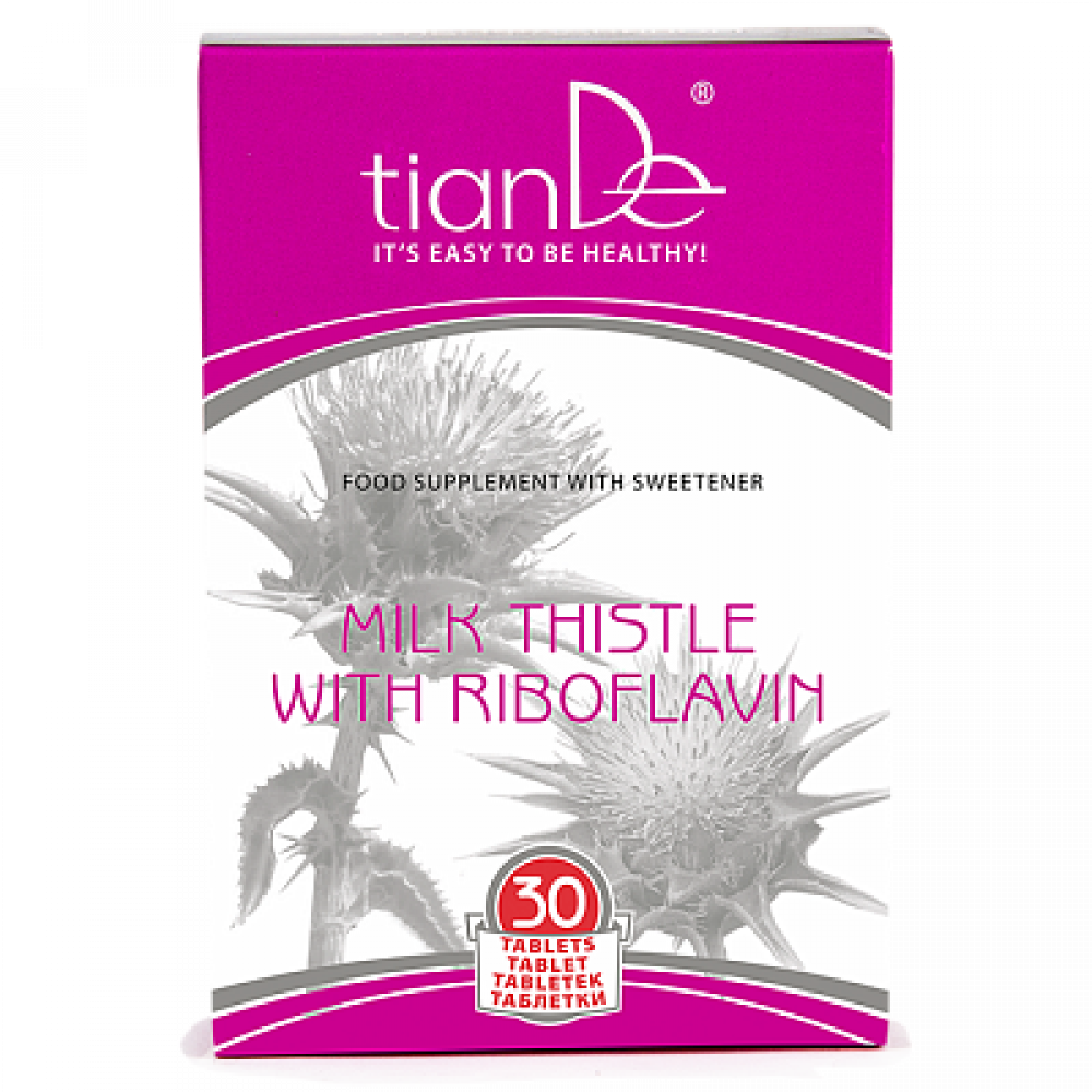 Zloženie jednej tablety: sorbitol (E420) - sladidlo, liehový extrakt z plodu pestreca mariánskeho - 50 mg, vodný extrakt z plodu pestreca mariánskeho - 50 mg, kyselina citrónová (E330) - regulátor kyslosti, stearan vápenatý (E4 /riboflavín - 1 mg (71 % RHP*). Netto váha: 18 g