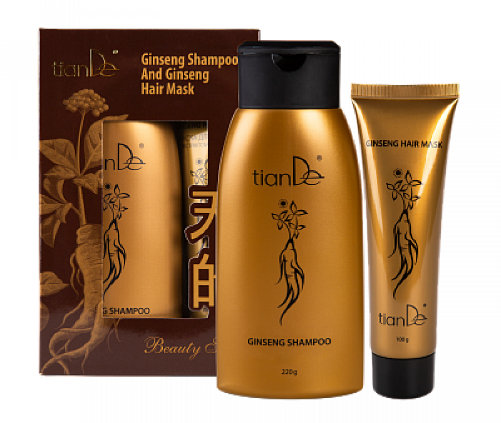Sada s extraktom ženšenu: šampón a maska na vlasy